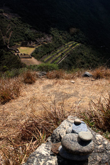 Apacheta con mensaje escrito en Choquequirao