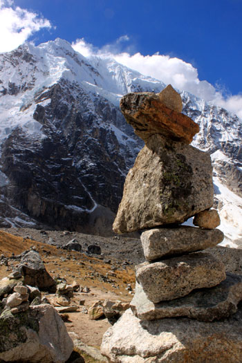 Apacheta en el abra frente al Apu Salktany