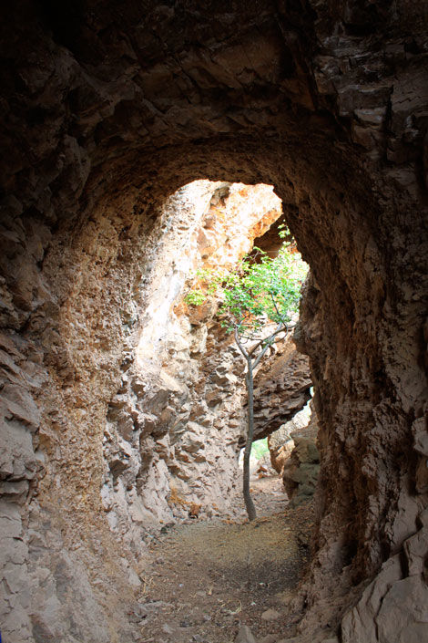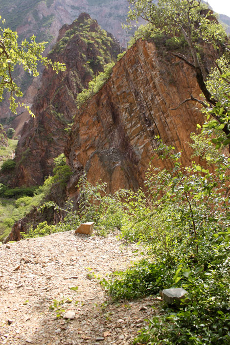 2. Se cruzan unos matorrales, hacia la zona de “Siete Vueltas” que son los zig zags que bajan por la pared del cañón.